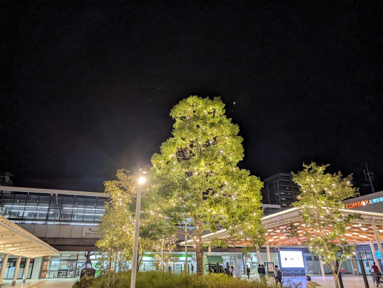 佐賀駅から佐賀中央郵便局へと続く中央大通りを散策してみました。市中心部のシンボルロードや唐人町緑道広場、エスプラッツ、バルーンミュージアム周辺まで広がる街並みは、幻想的な光の装いに包まれ、訪れる人々を優しく迎えています。