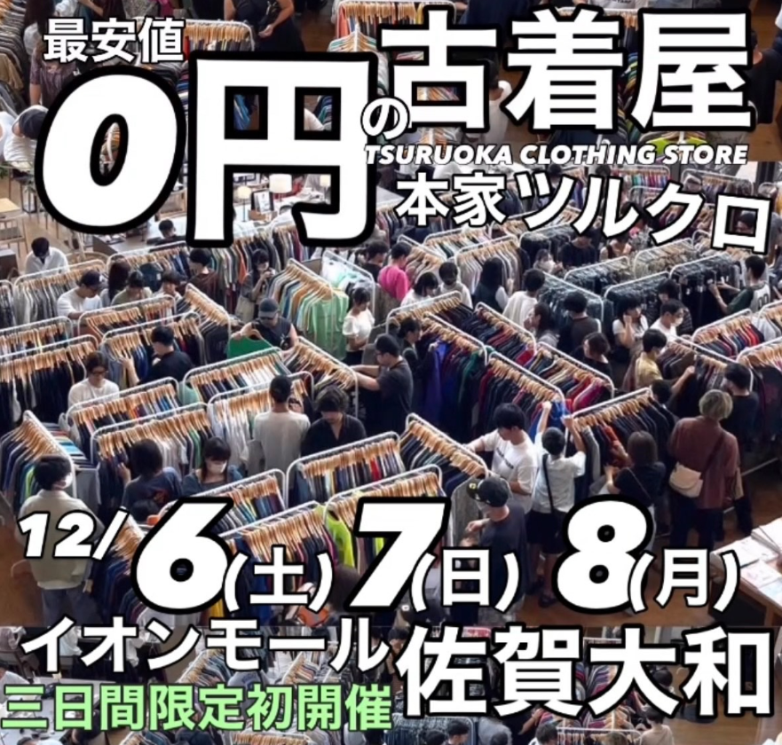 【佐賀市】“最安値0円の古着屋”が佐賀に登場!TSURUOKA CLOTHING STORE期間限定イベントが12/6からイオンモール佐賀大和に