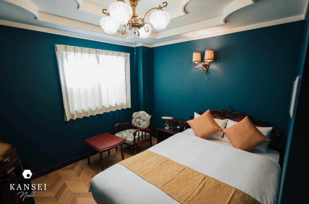 建物は、40年以上にわたり地域に親しまれてきた「ビジネスホテル一条」を活用しています。長年大切にされてきた建物の記憶を受け継ぎながら、レンガ造りの外観やアンティーク家具、アート作品を生かし、ホテル全体に物語性をもたせた空間へとリブランディングされました。各客室では、1960年代ヨーロッパのホテル文化を想起させる色彩や壁紙、照明が採用され、世界の都市の記憶と重なるような視覚体験が演出されています。